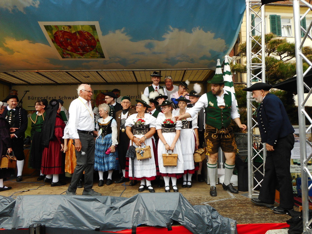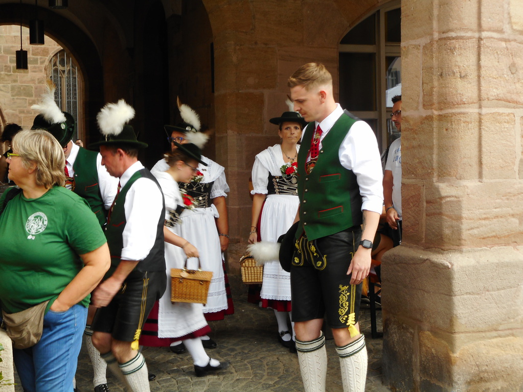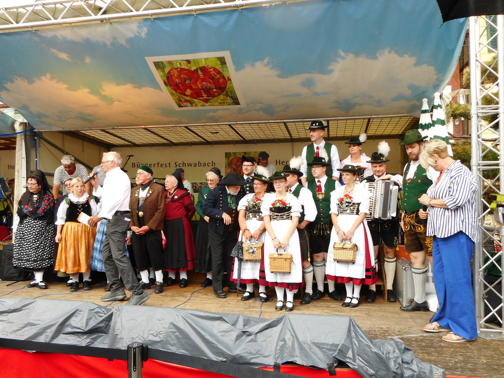 Als Verein zeigen wir Volkstänze bei Veranstaltungen in den für Schwabach üblichen Trachten. Die Trachten aller Größen werden vom Verein gestellt.